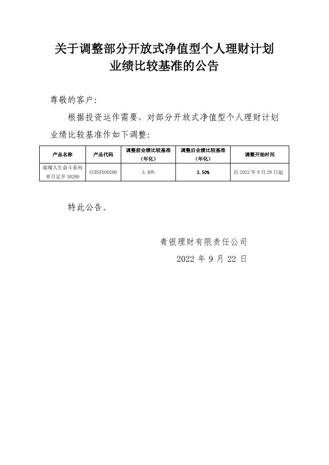 关于调整部分开放式净值型人民币个人理财计划业绩基准的公告20220922(1) (1).pdf