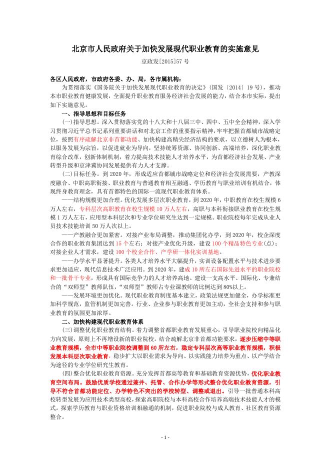 · 北京市人民政府关于加快发展现代职业教育的实施意见.doc