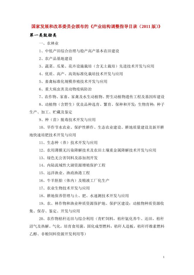 · 国家发展和改革委员会颁布的《产业结构调整指导目录(2011版)》.doc