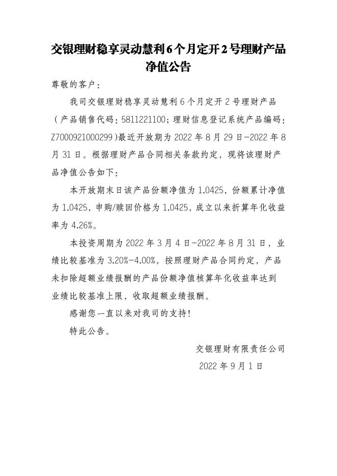 交银理财稳享灵动慧利6个月定开2号理财产品净值公告(2022年9月1日).pdf