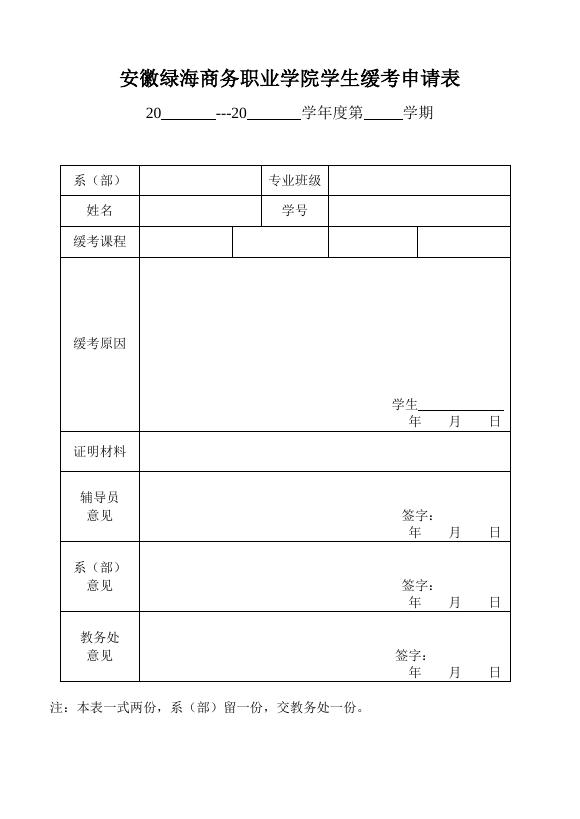 缓考申请表 - 安徽绿海商务职业学院.doc