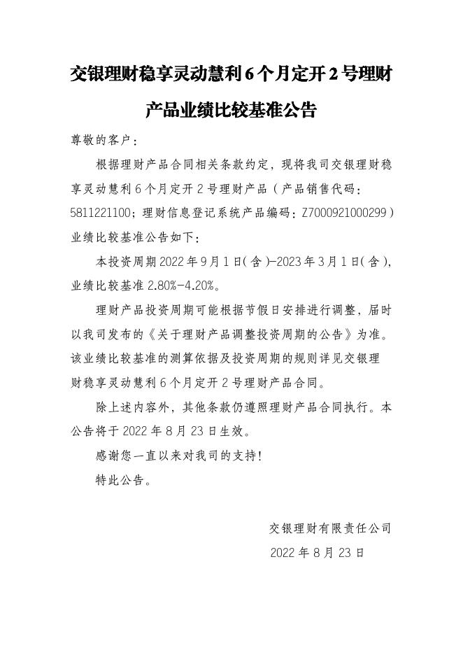 交银理财稳享灵动慧利6个月定开2号理财产品业绩比较基准公告(2022年8月23日).pdf
