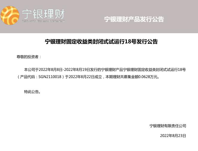 宁银理财固定收益类封闭式试运行18号发行公告.pdf
