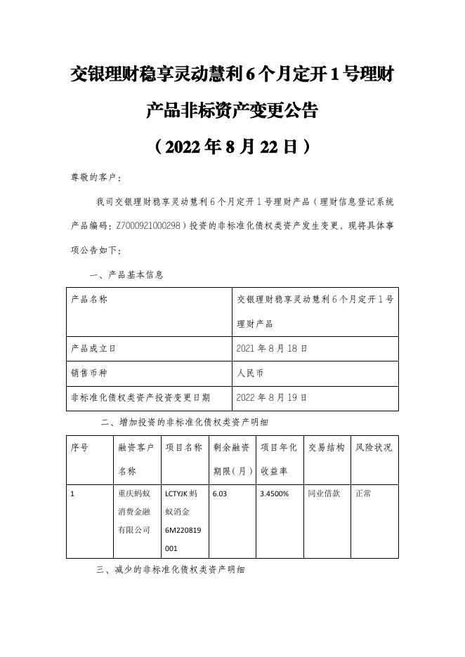 交银理财稳享灵动慧利6个月定开1号理财产品非标资产变更公告(2022年8月22日).pdf