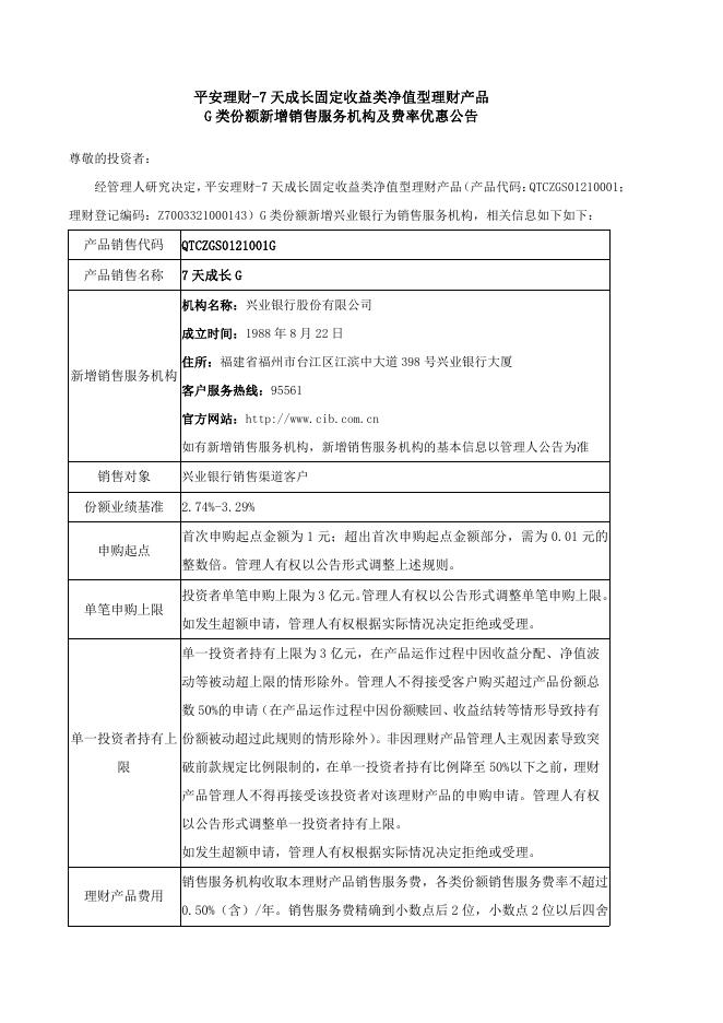 平安理财-7天成长固定收益类净值型理财产品G类份额新增销售服务机构及费率优惠公告 (1).pdf