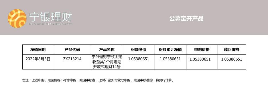 宁银理财宁欣固定收益类1个月定期开放式理财14号_净值披露.pdf