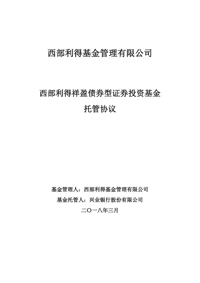 西部利得祥盈债券型证券投资基金托管协议.pdf