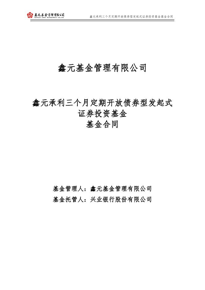 鑫元承利三个月定期开放债券型发起式证券投资基金基金合同.pdf