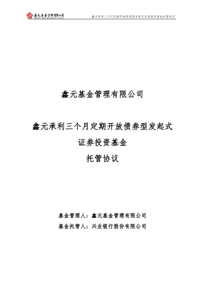 鑫元承利三个月定期开放债券型发起式证券投资基金托管协议.pdf