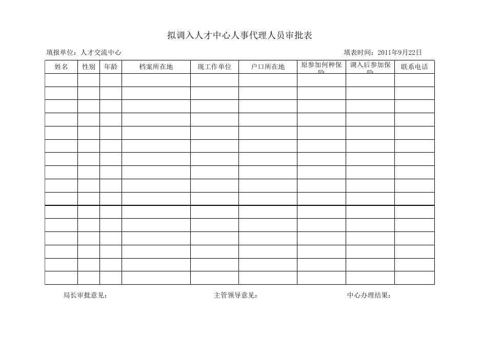 2011-08-29拟调入人才中心人事代理人员审批表.xls