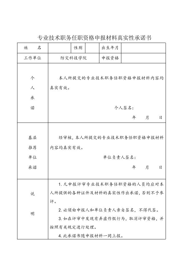 2010-04-01专业技术职务任职资格申报材料真实性承诺书.doc