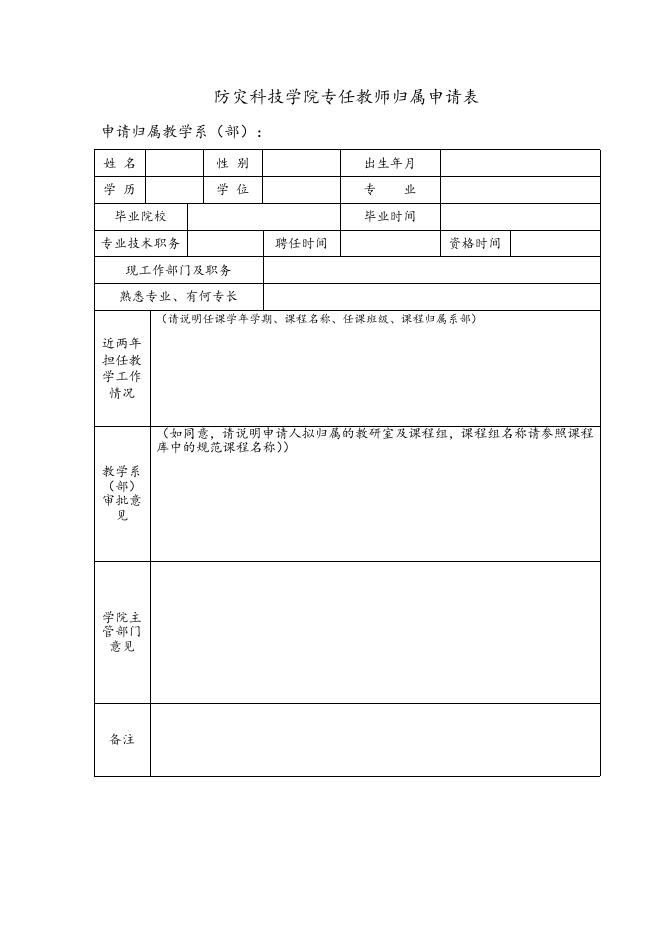 2010-01-11防灾科技学院专任教师归属申请表.doc