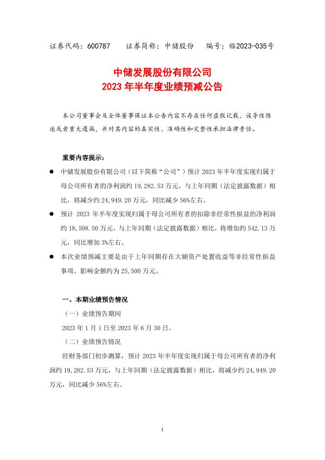 2023-07-15:中储股份:中储发展股份有限公司2023年半年度业绩预减公告.pdf