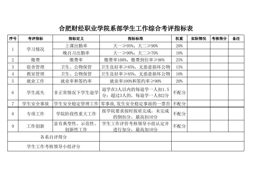 合肥财经职业学院系部学生工作综合考评指标表.xls
