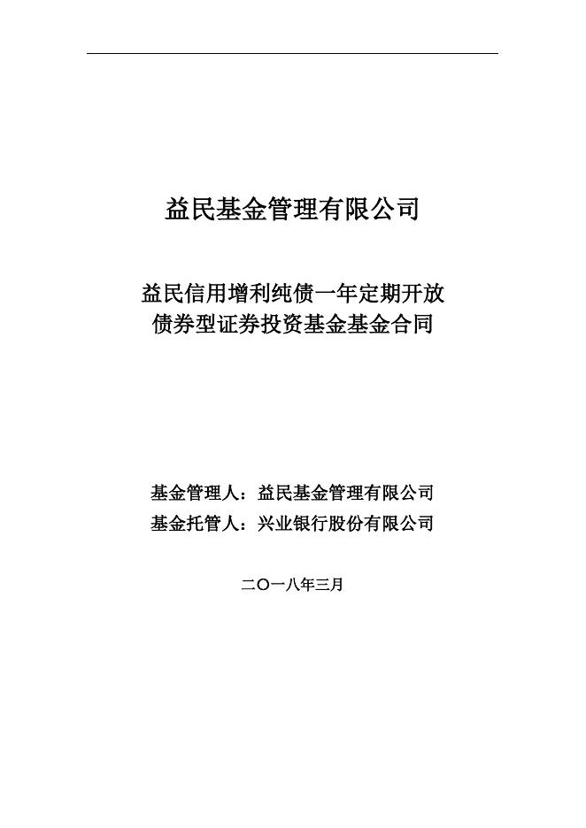 益民信用增利纯债一年定期开放债券型证券投资基金基金合同.pdf
