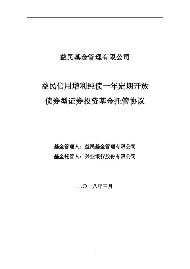 益民信用增利纯债一年定期开放债券型证券投资基金托管协议.pdf