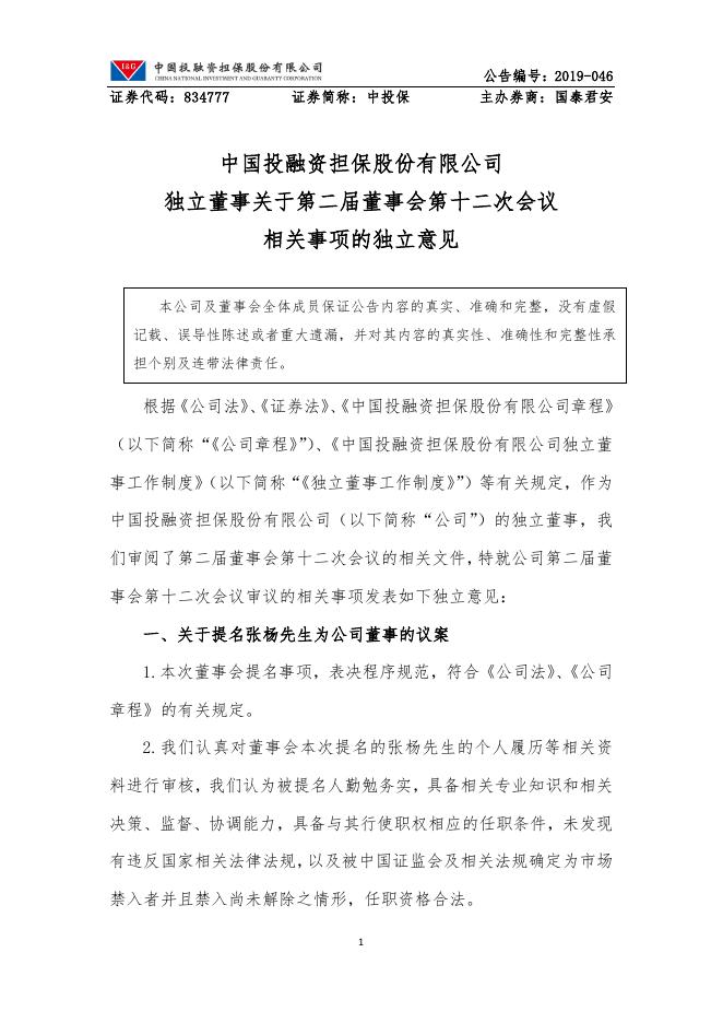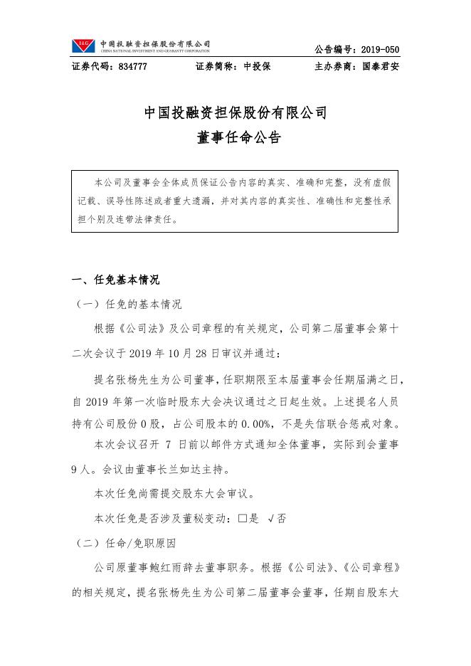 中国投融资担保股份有限公司董事任命公告(张杨).pdf