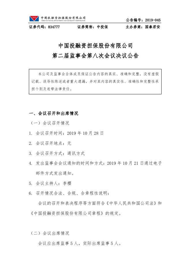 中国投融资担保股份有限公司第二届监事会第八次会议决议公告.pdf