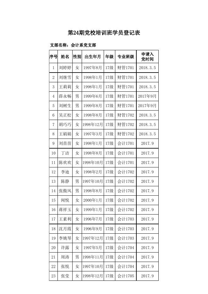 第二十四期党校培训班学员名单公示-党建工作 - 安徽合肥财经职业学院-专注于人工智能制造职高,直播电商职业大专招生.xls