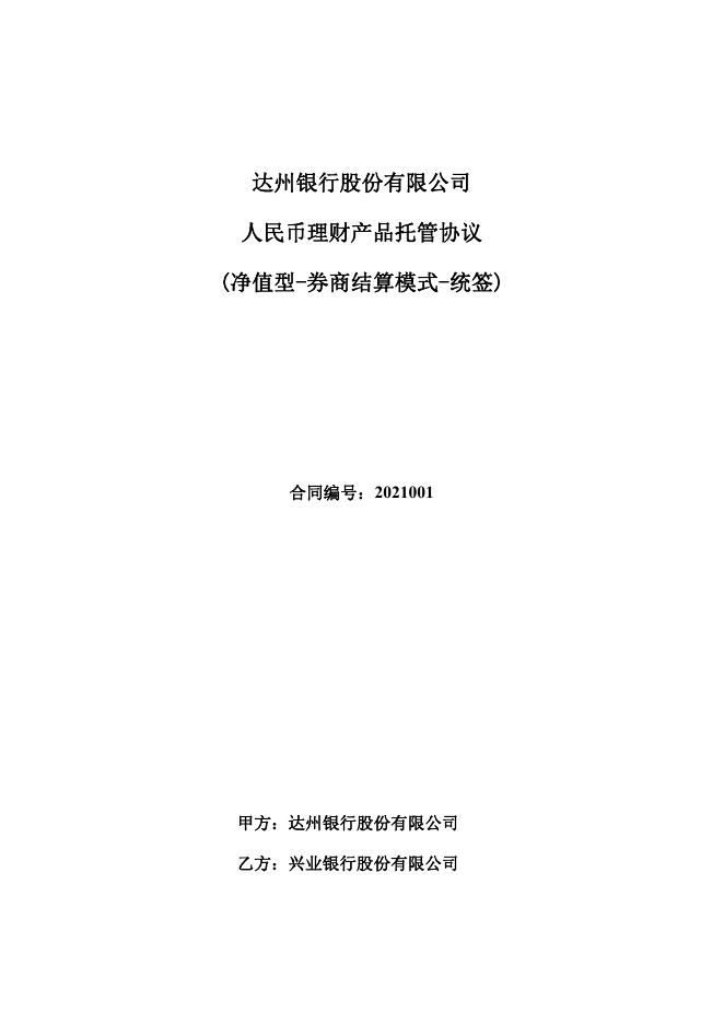 达州银行股份有限公司人民币理财产品托管协议(净值型-券商结算模式-统签).pdf