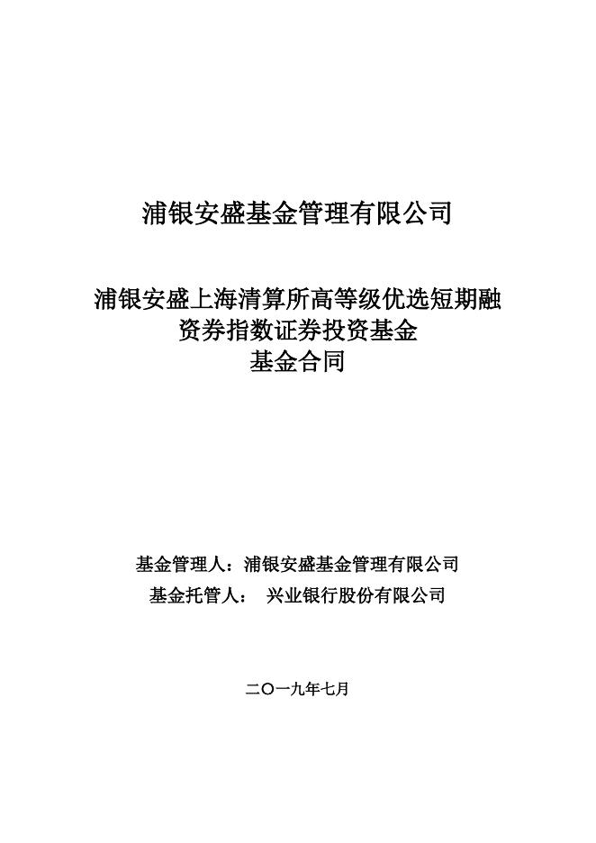 浦银安盛上海清算所高等级优选短期融资券指数证券投资基金基金合同.pdf