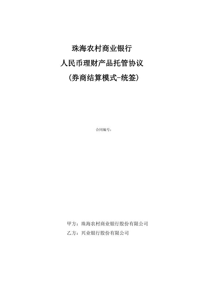 珠海农村商业银行人民币理财产品托管协议(净值型-券商结算模式-统签).pdf