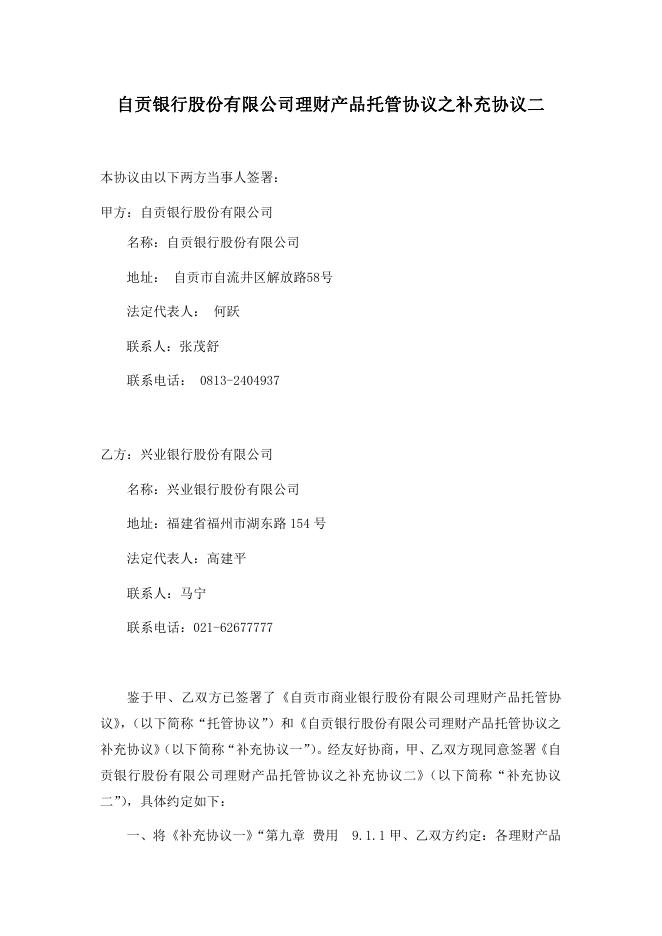 自贡银行股份有限公司理财产品托管协议之补充协议二.pdf