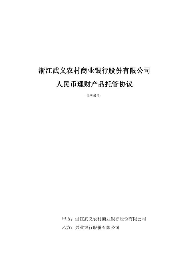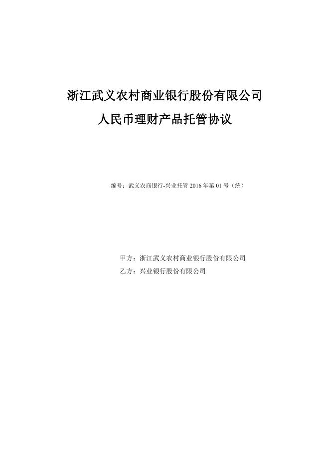 浙江武义农村商业银行股份有限公司人民币理财产品托管协议2016.pdf
