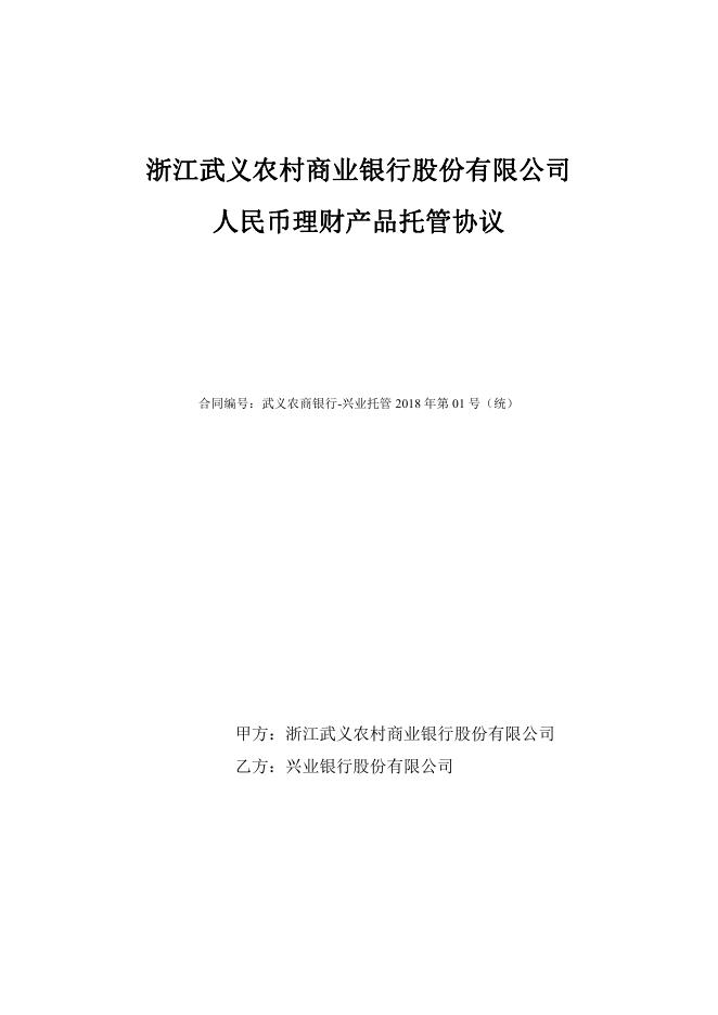 浙江武义农村商业银行股份有限公司人民币理财产品托管协议2018.pdf