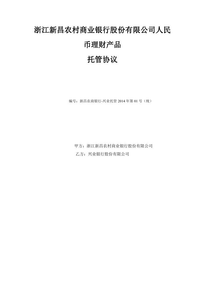 浙江新昌农村商业银行股份有限公司人民币理财产品托管协议.pdf