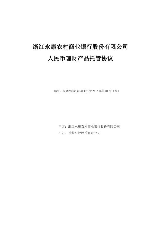 浙江永康农村商业银行股份有限公司人民币理财产品托管协议.pdf