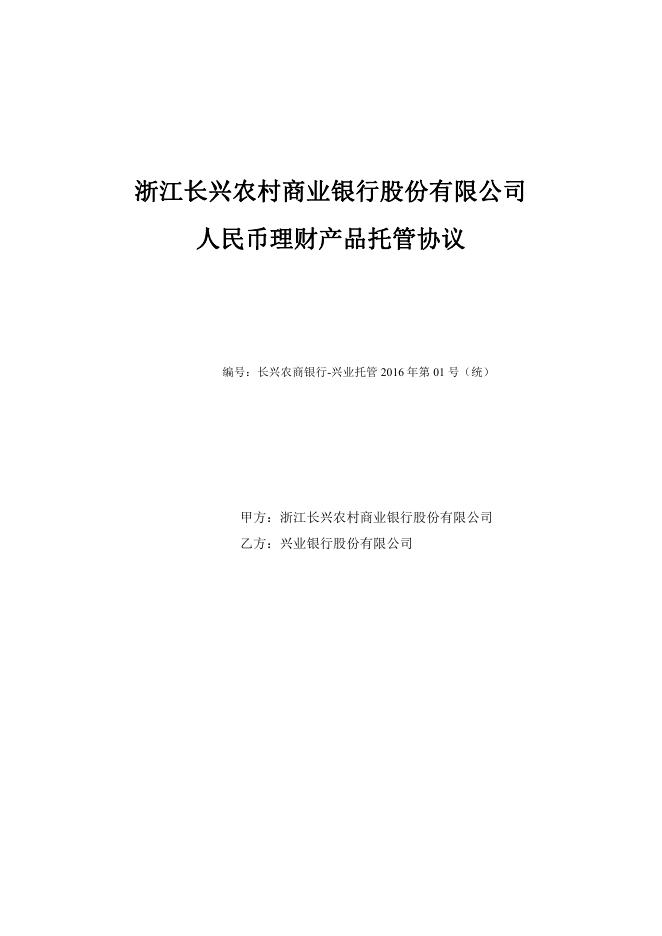 浙江长兴农村商业银行股份有限公司人民币理财产品托管协议2016.pdf