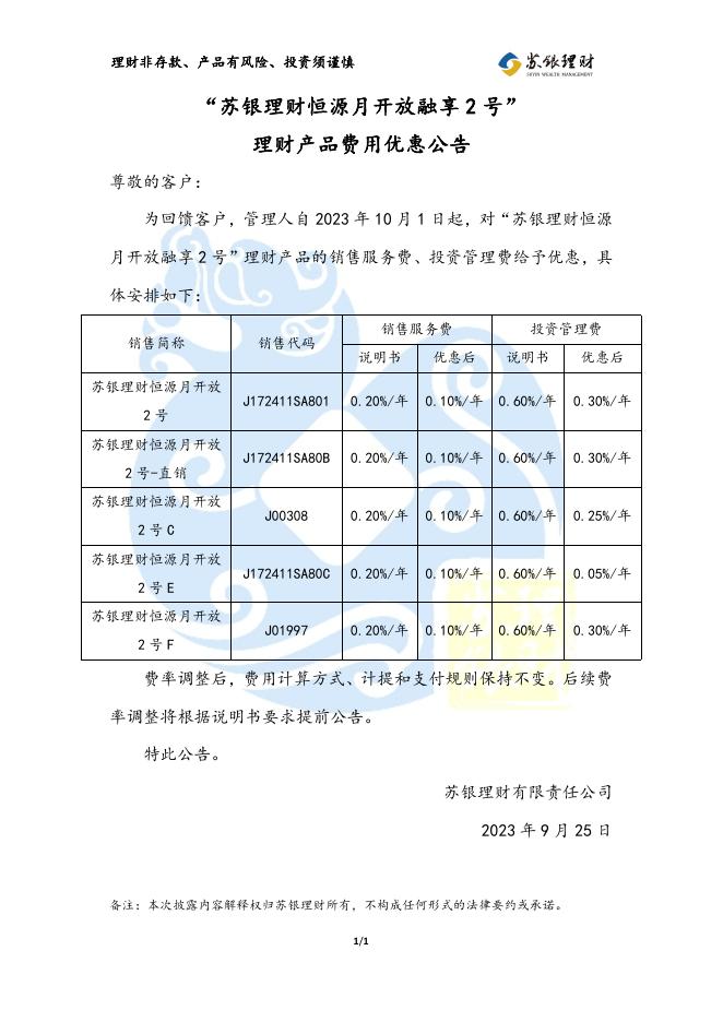 “苏银理财恒源月开放融享2号”理财产品费用优惠公告(2023年10月1日执行).pdf