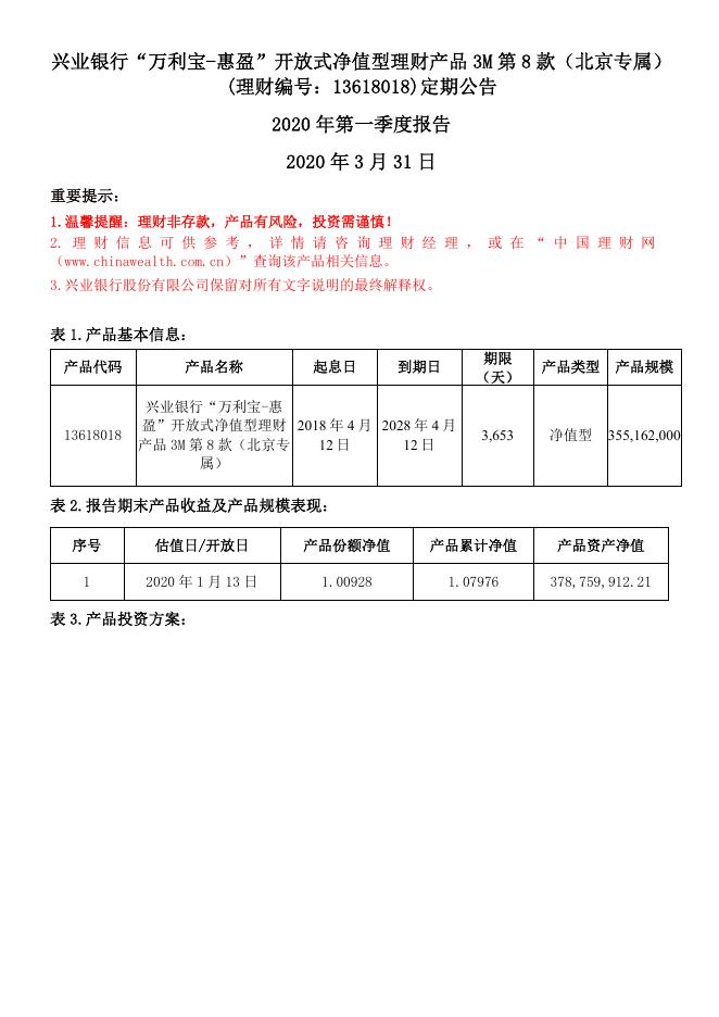 兴业银行“万利宝-惠盈”开放式净值型理财产品3M第8款(北京专属)(理财编号:1pdf
