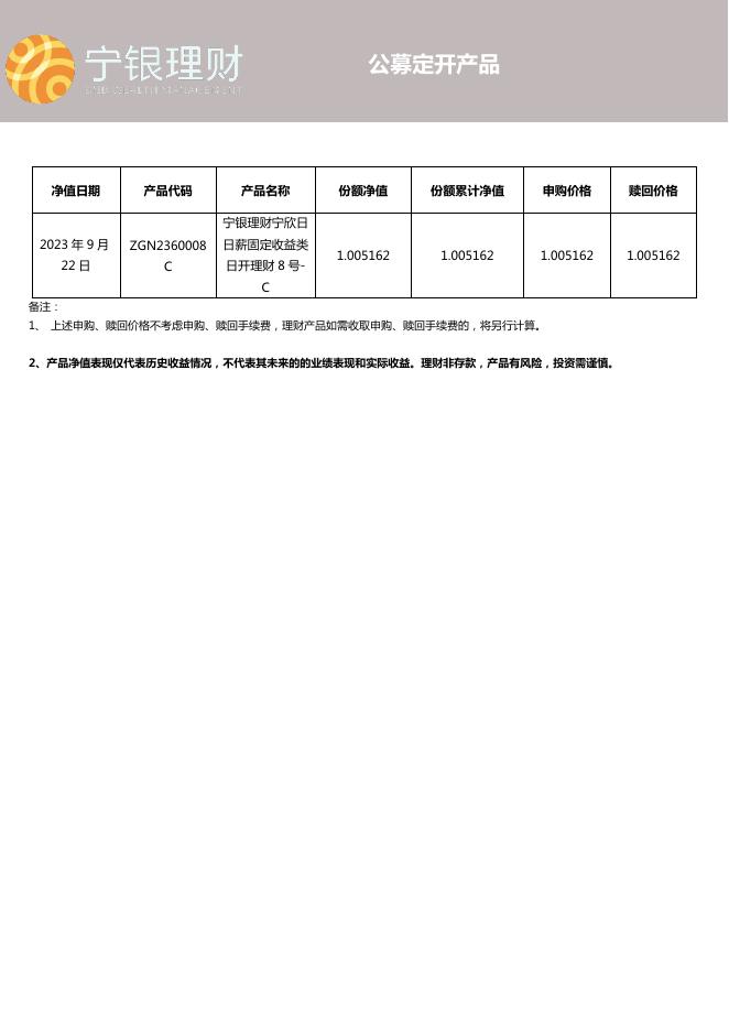 宁银理财宁欣日日薪固定收益类日开理财8号-C_净值披露_20230925.pdf
