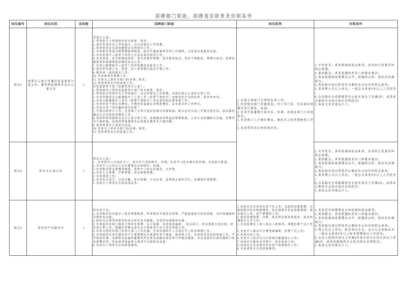 附件1:招聘岗位职责、招聘部门职能及任职条件.xlsx