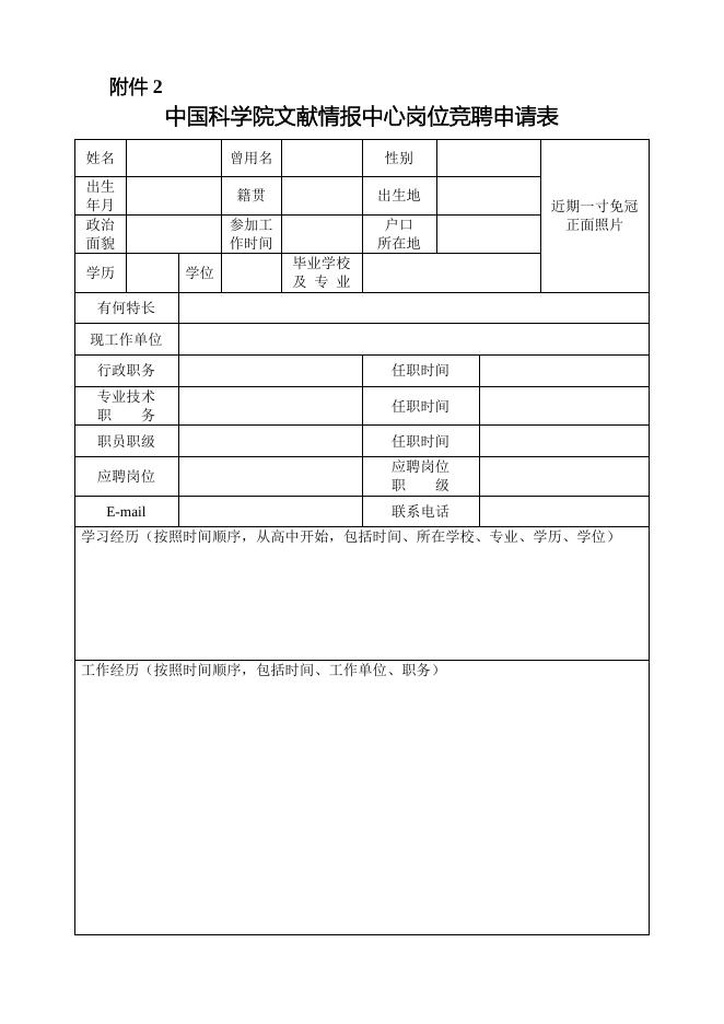 附件2:中国科学院文献情报中心岗位竞聘申请表.docx