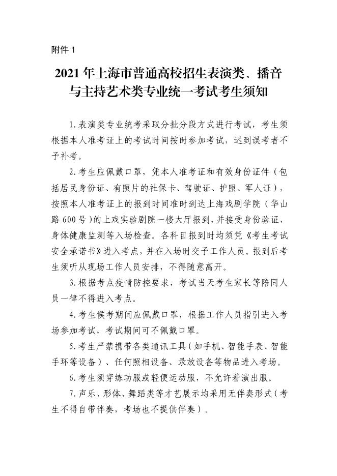 2021年上海市普通高校招生表演类、播音与主持艺术类专业统一考试考生须知.pdf