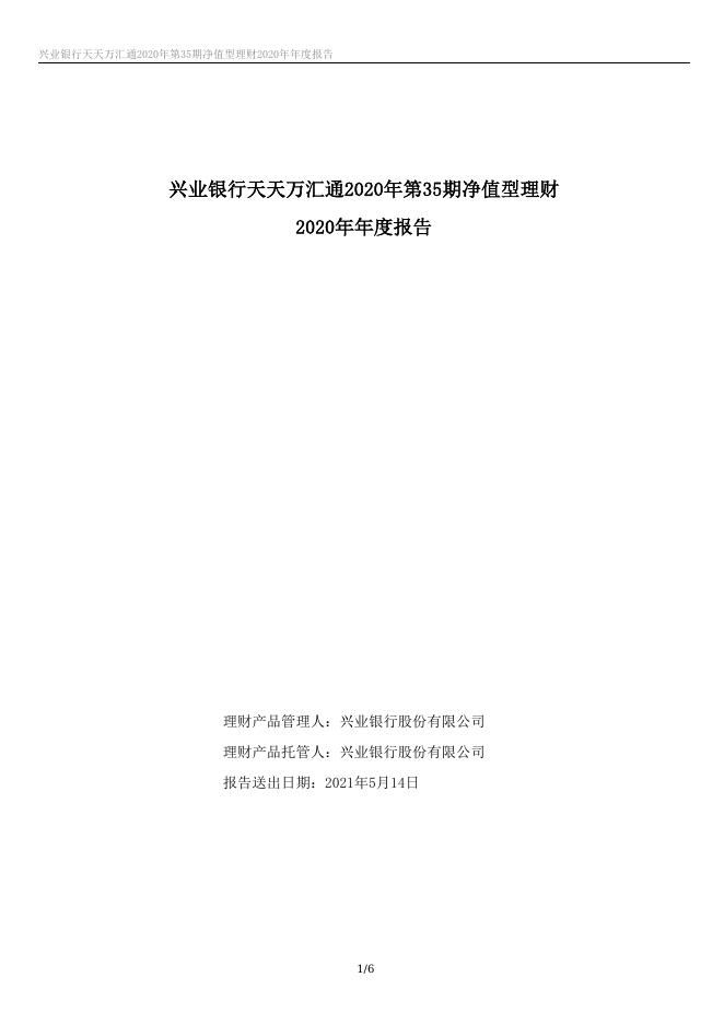 兴业银行天天万汇通2020年第35期净值型理财 2020年年度报告.docx