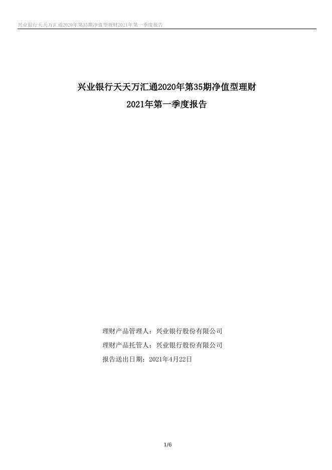 兴业银行天天万汇通2020年第35期净值型理财 2021年第一季度报告.docx