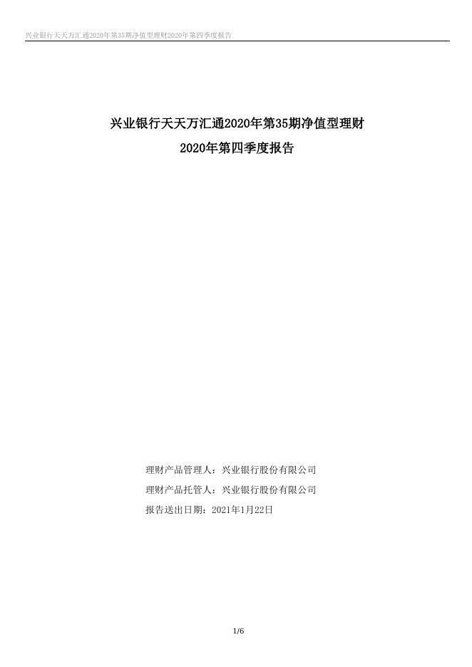 兴业银行天天万汇通2020年第35期净值型理财 2020年第四季度报告.docx