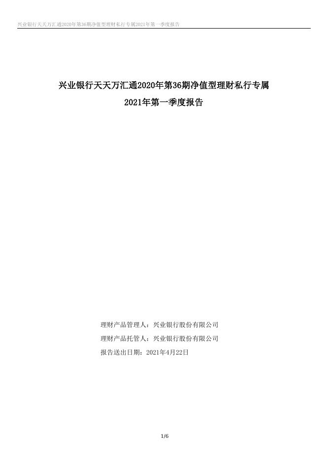 兴业银行天天万汇通2020年第36期净值型理财私行专属 2021年第一季度报告.docx