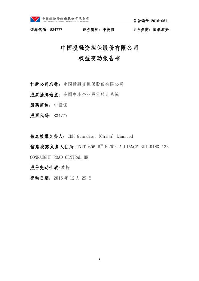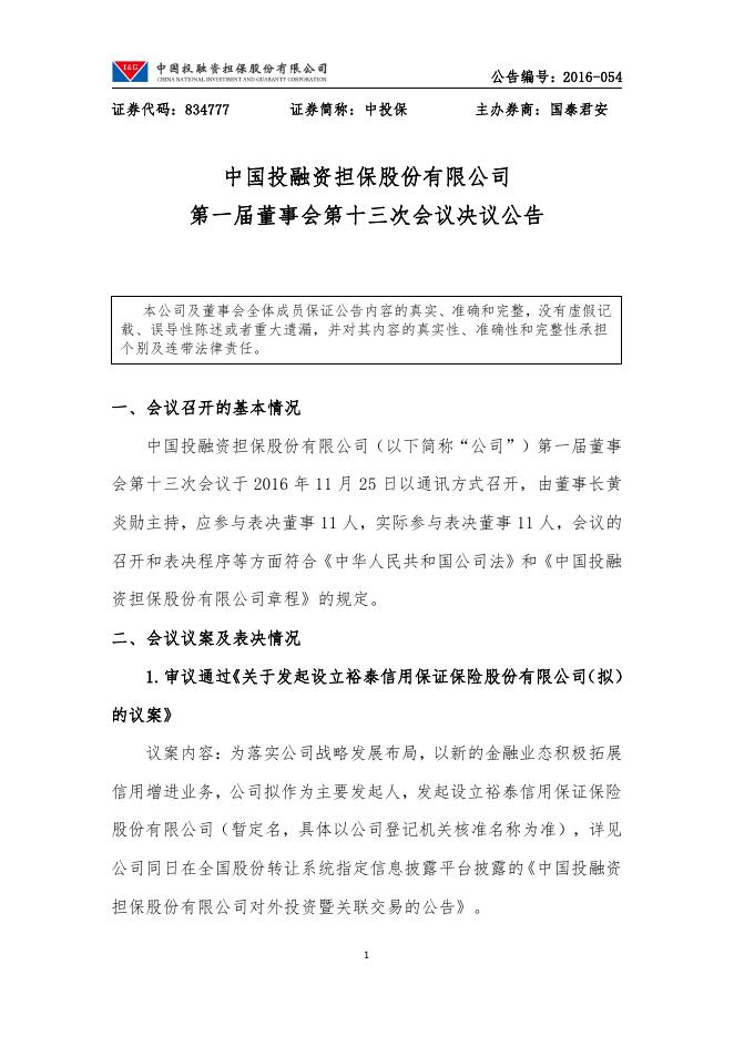 中国投融资担保股份有限公司第一届董事会第十三次会议决议公告.pdf
