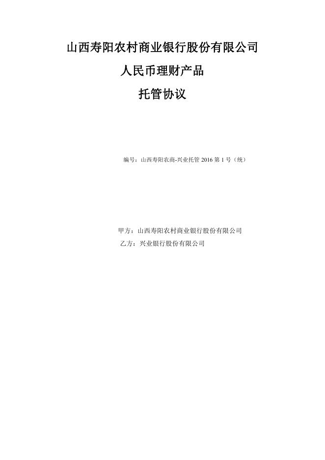 山西寿阳农村商业银行股份有限公司人民币理财产品托管协议.pdf
