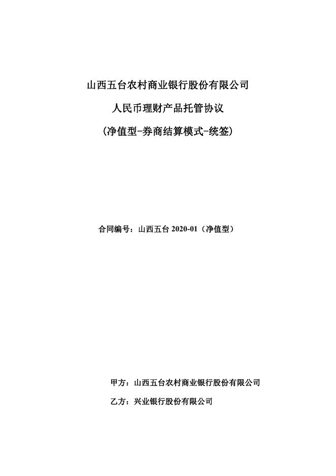山西五台农村商业银行股份有限公司人民币理财产品托管协议(净值型-券商结算模式-统签).pdf