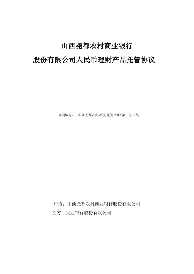 山西尧都农村商业银行股份有限公司人民币理财产品托管协议-2017第1号.pdf