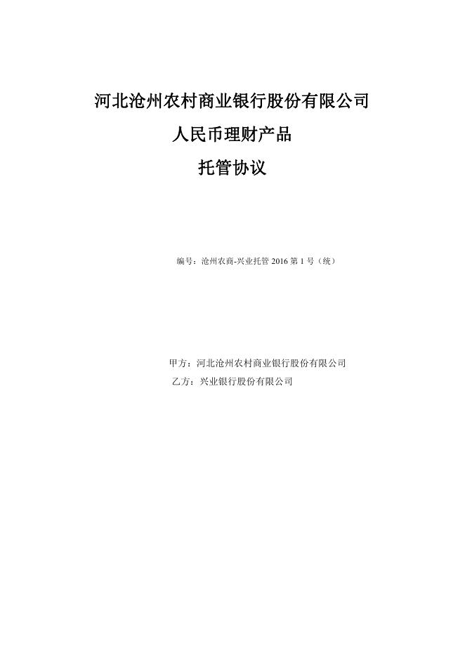 河北沧州农村商业银行股份有限公司人民币理财产品托管协议.pdf