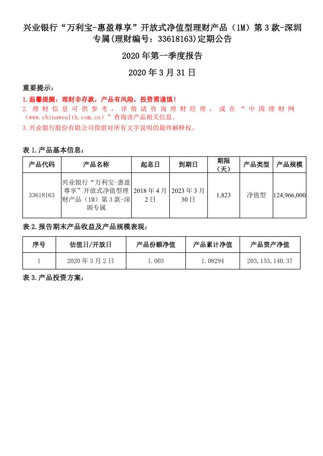 兴业银行“万利宝-惠盈尊享”开放式净值型理财产品(1M)第3款-深圳专属(理财编pdf