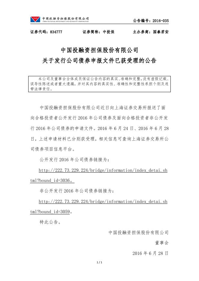 中投保关于发行公司债券申报文件已获受理的公告.pdf