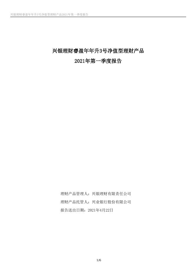 兴银理财睿盈年年升3号净值型理财产品2021年第一季度报告.docx